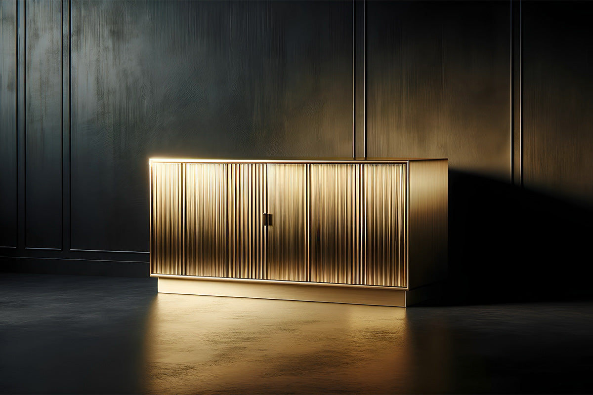 Kit di vernici per superfici in legno che riproduce l’effetto metallico galvanico matt. Finitura uniforme e resistente per un look tecnico e sofisticato.